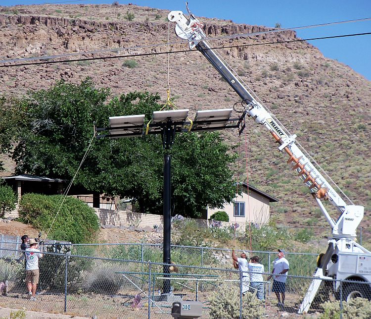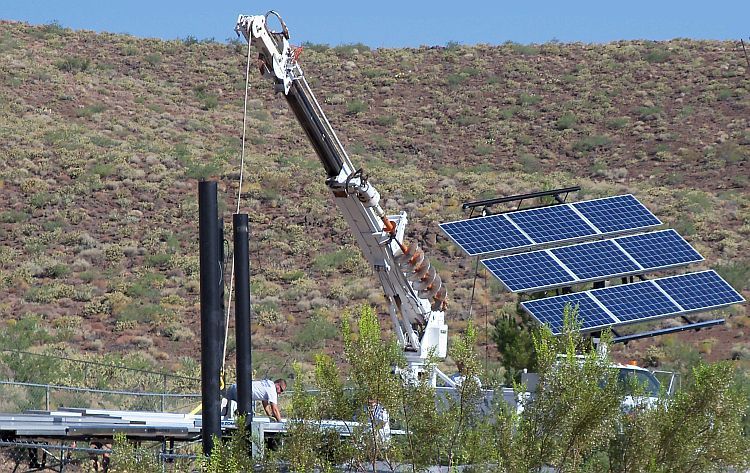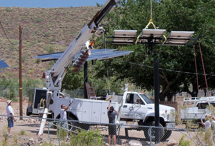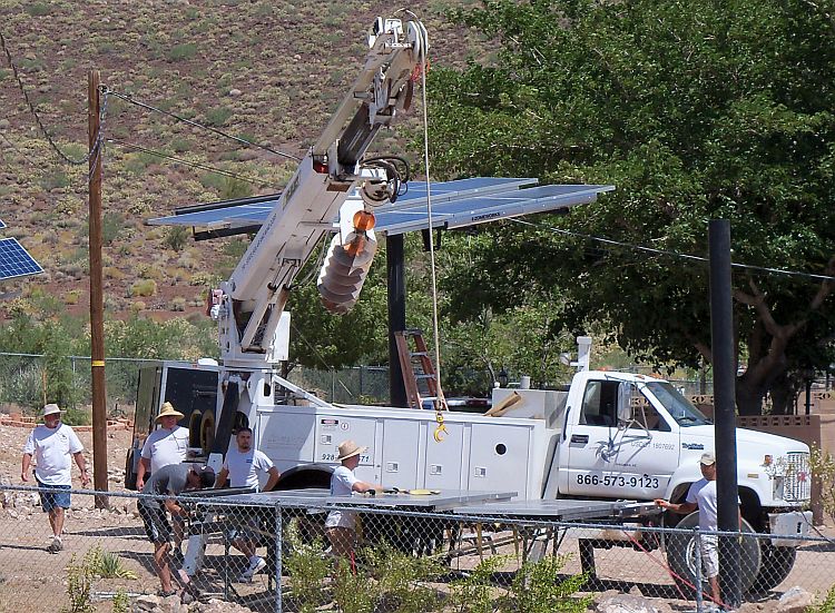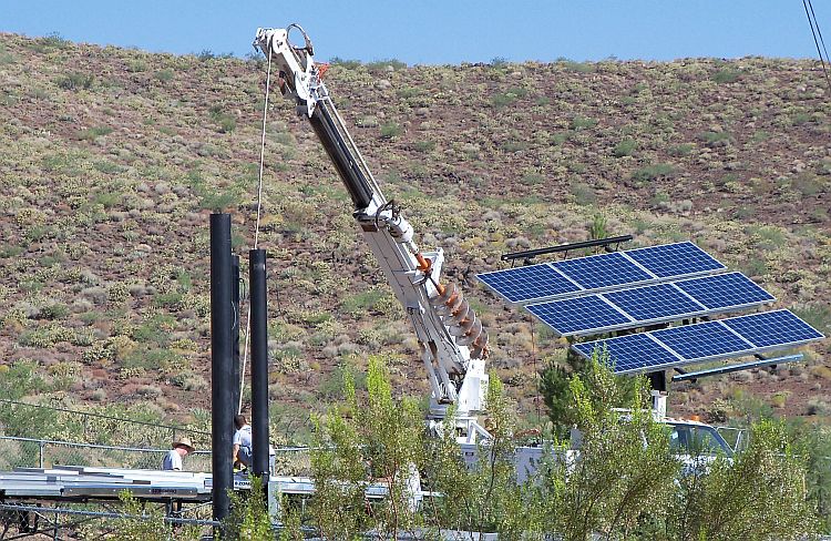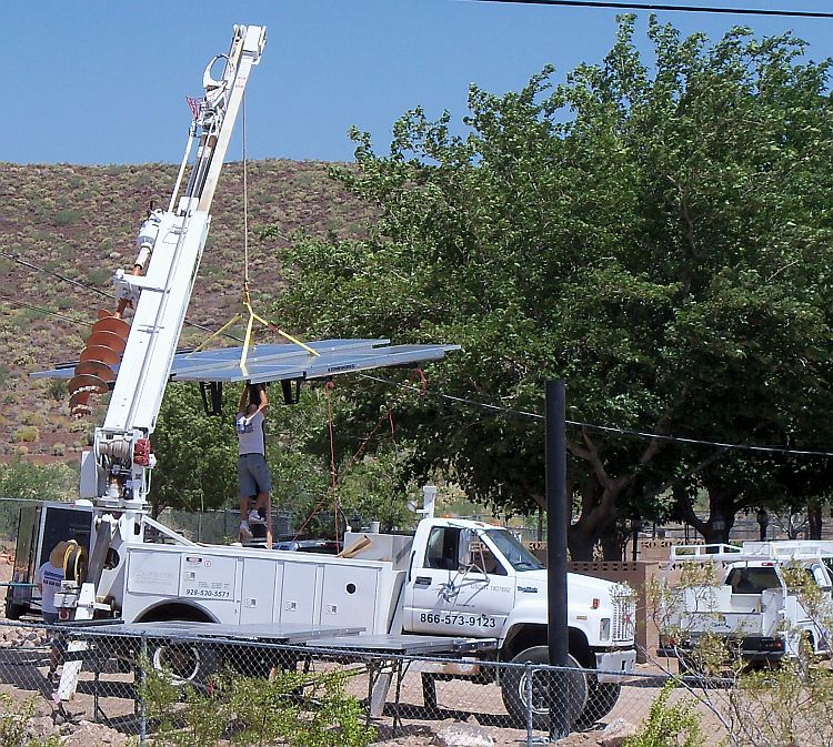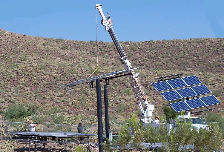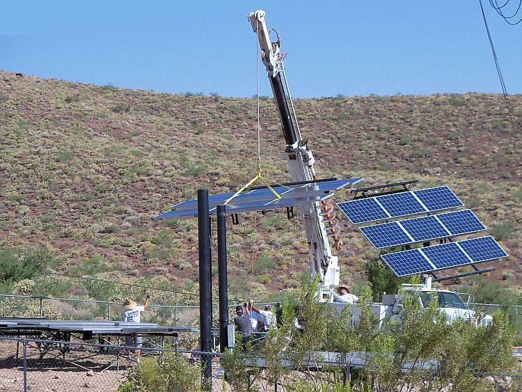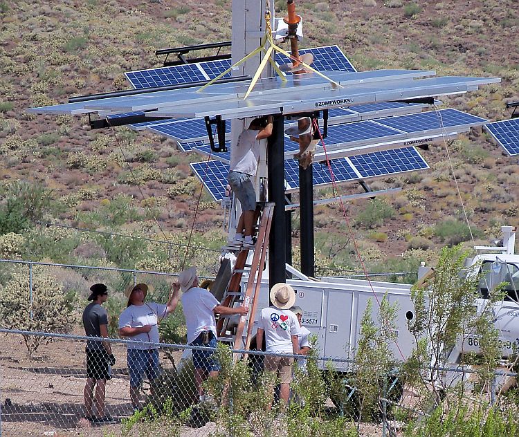 The poles have been installed and the panels are being assembled for all 7 solar trackers.